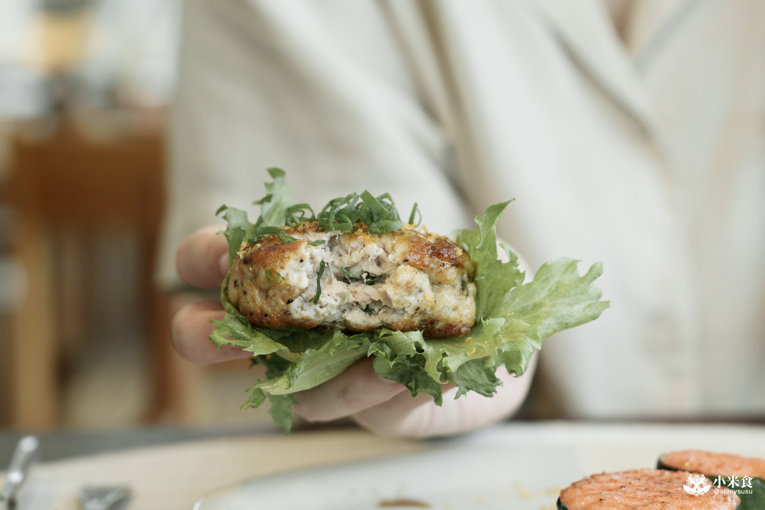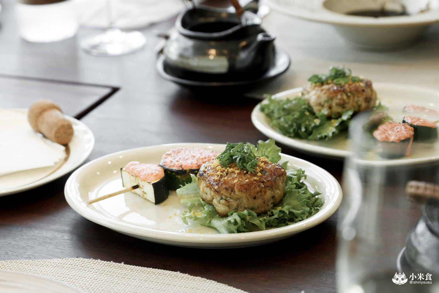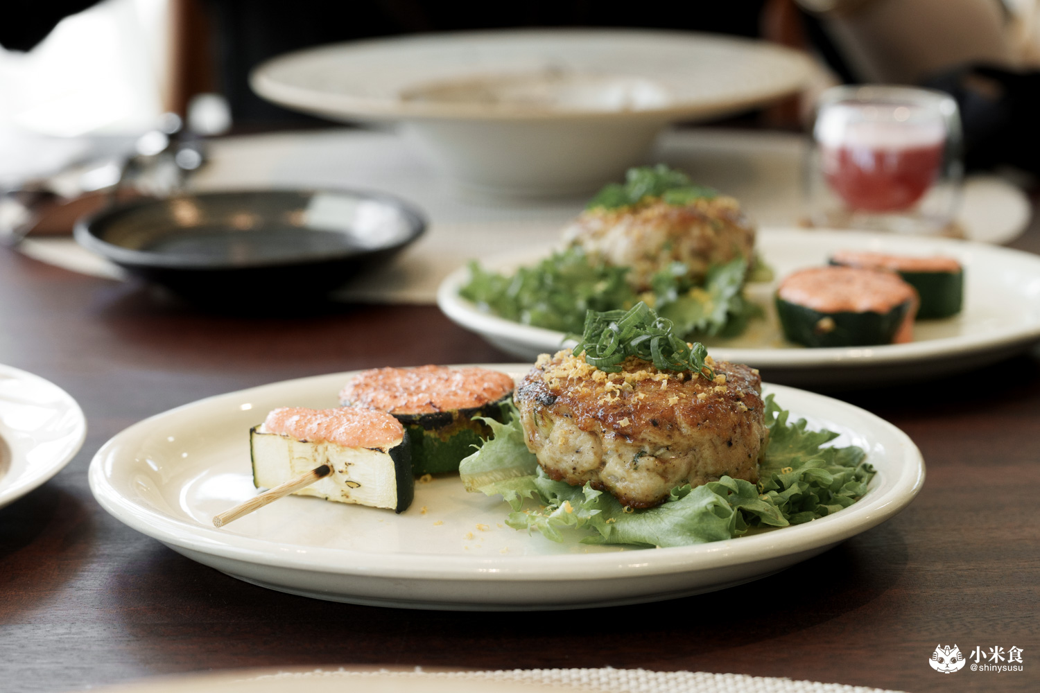 主餐前的等待時間,會有主廚特製小料理串場,本期端出日式雞肉丸,咬下肉彈鮮Q溢滿汁,生菜包覆添爽度,可以感受到Sean在日式美味下足功夫,很喜歡