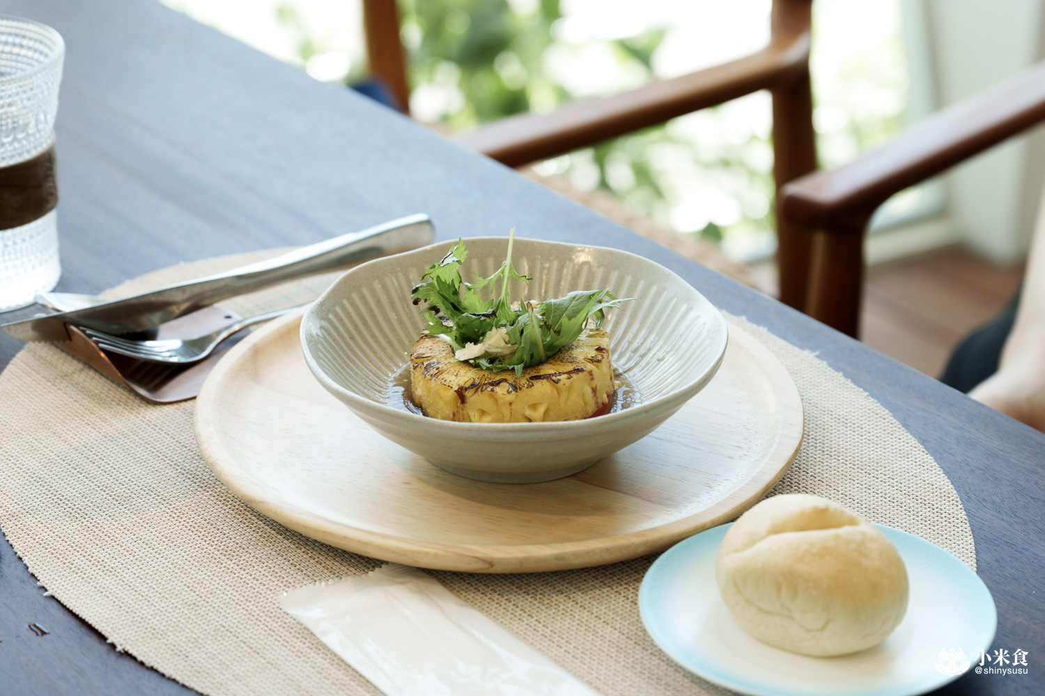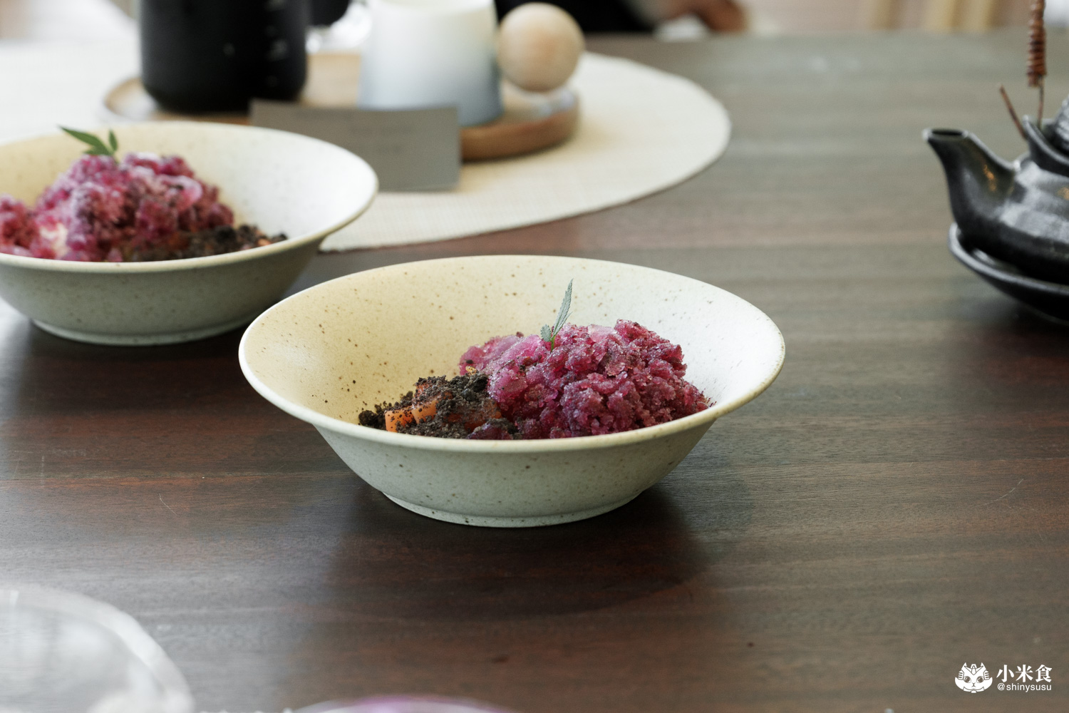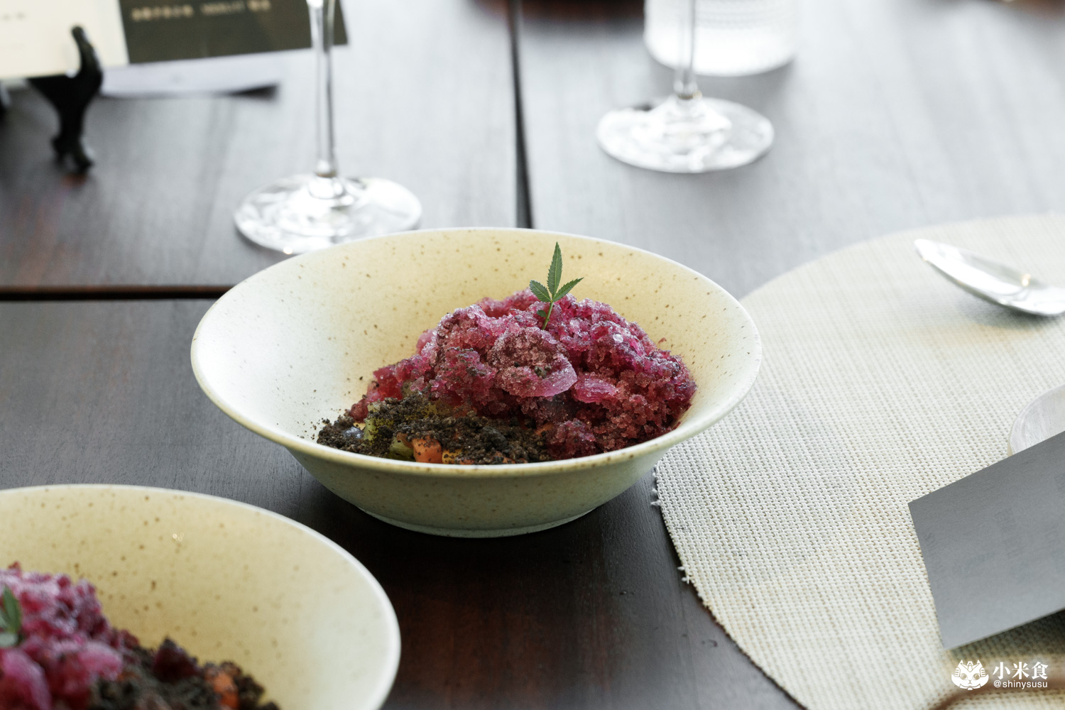 主餐前的等待時間,會有主廚特製小料理串場,本期端出日式雞肉丸,咬下肉彈鮮Q溢滿汁,生菜包覆添爽度,可以感受到Sean在日式美味下足功夫,很喜歡