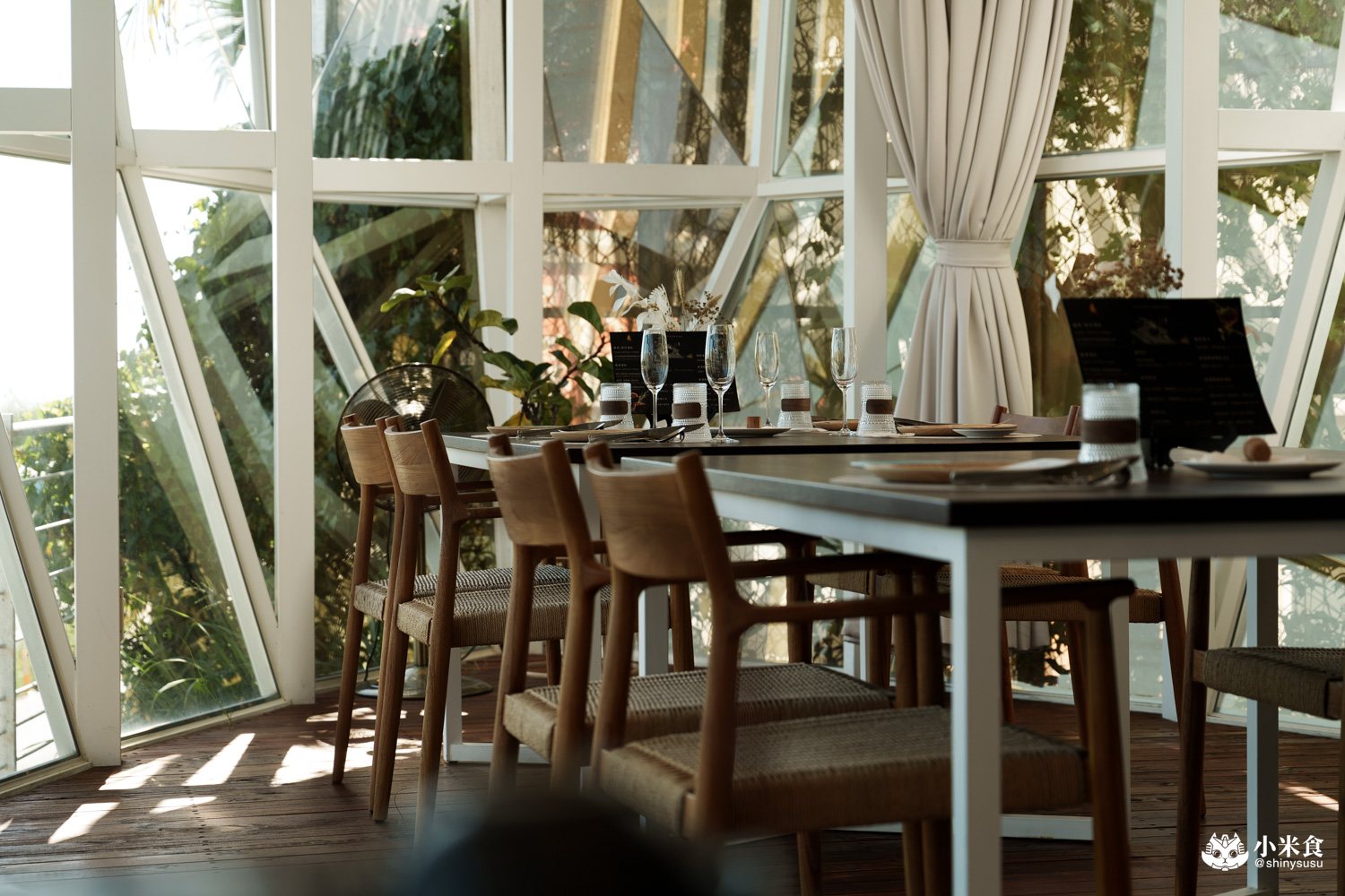 啡帆餐廳空間以白淨唯美的玻璃屋呈現,每個角落均能引入明亮採光,身心舒服指數100%!