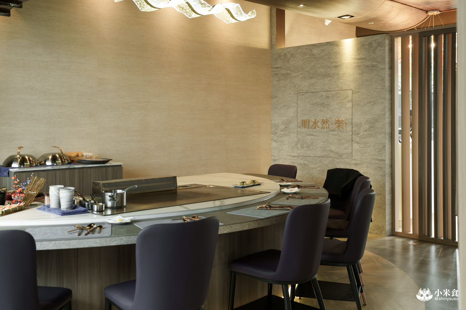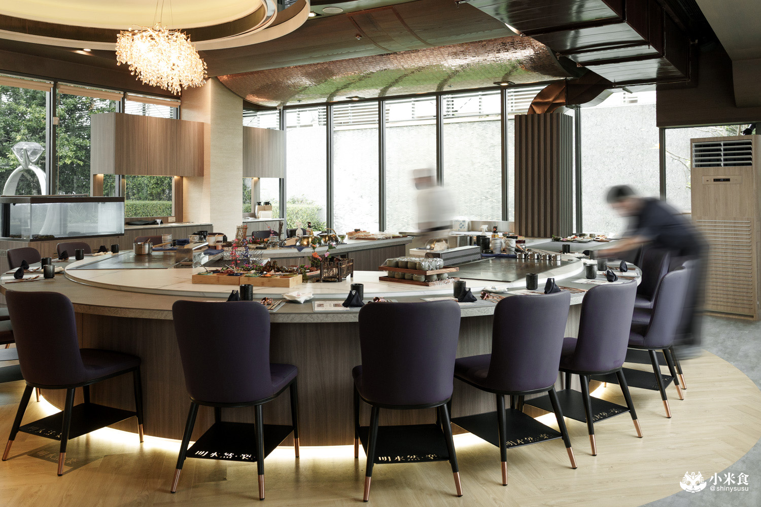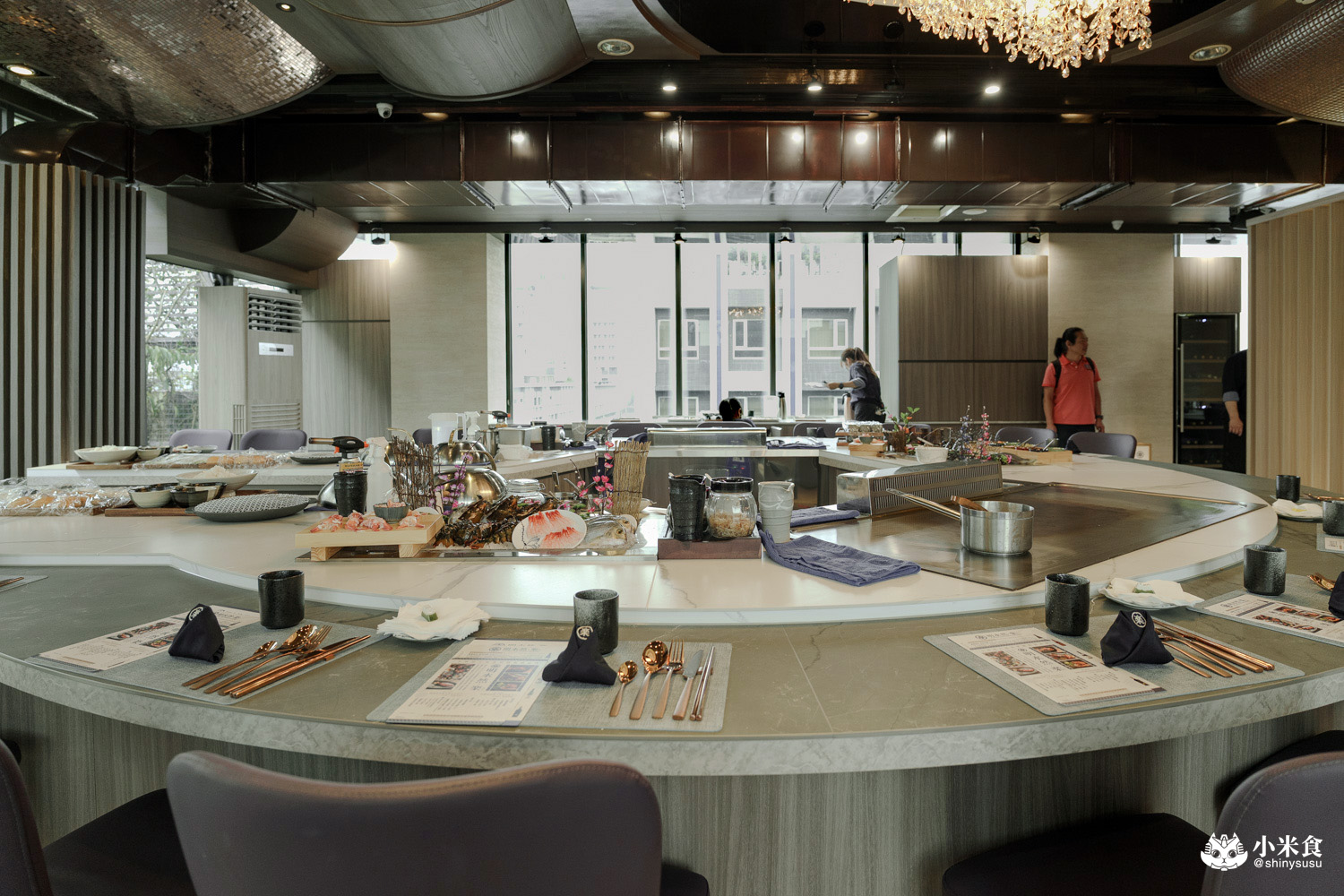 明水然樂 台中星享道空間寬敞舒適,擁有一座U型大餐檯與開放式8人座小包廂,三片玻璃窗令空間360度全採光環抱,打造無暗角環境,用餐氛圍滿分愜意。