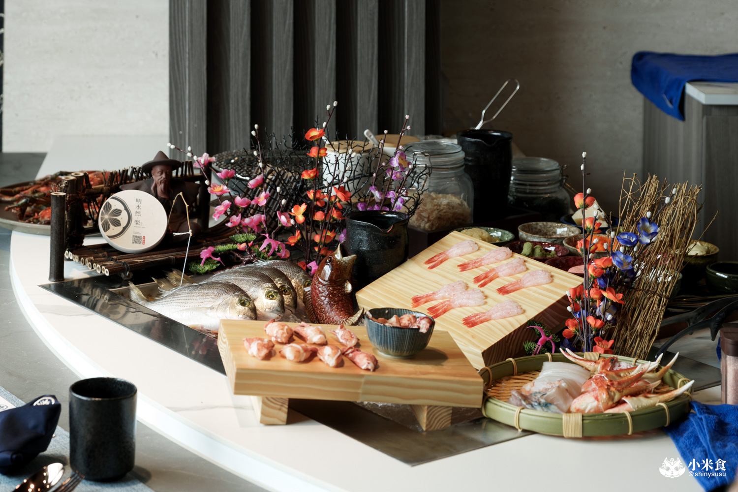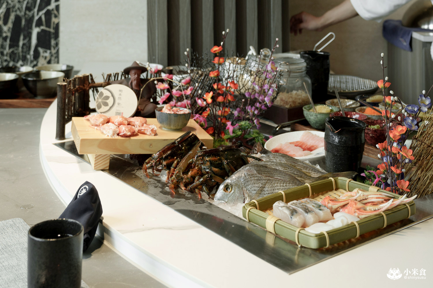 明水然樂無菜單鐵板燒用餐前,會於餐檯上演今日鐵板料理的食材展示秀,眼前這座鮮氣炸裂的食材小山,令嘴角笑意上揚,感官分數拉滿滿~台中逢甲餐廳美食又多了美味新選擇!