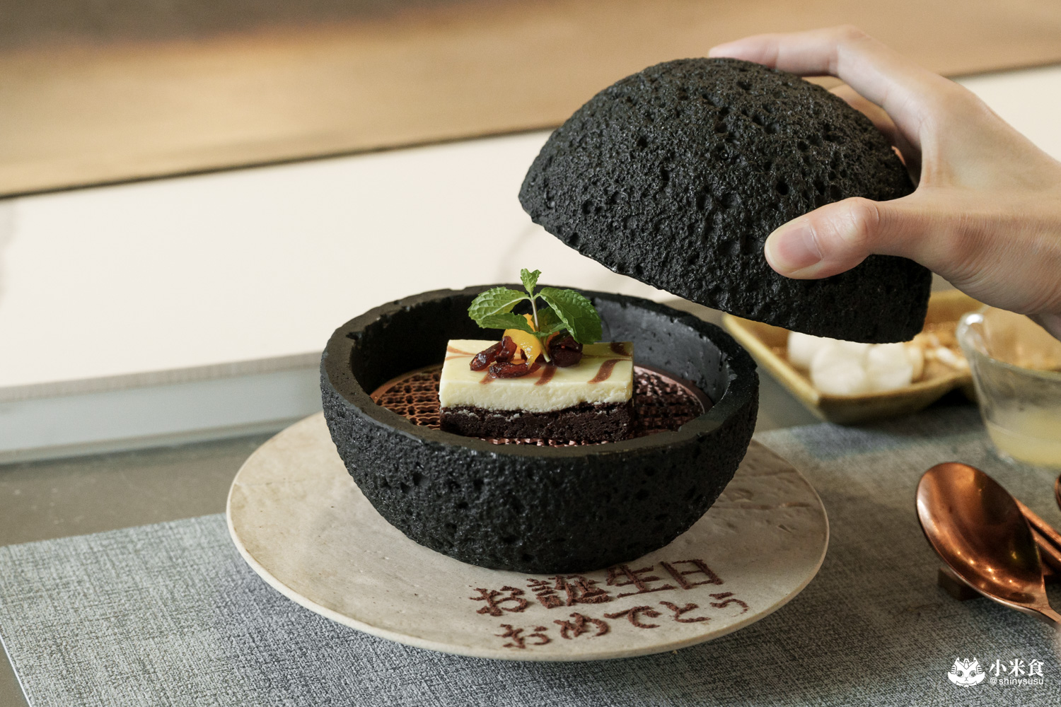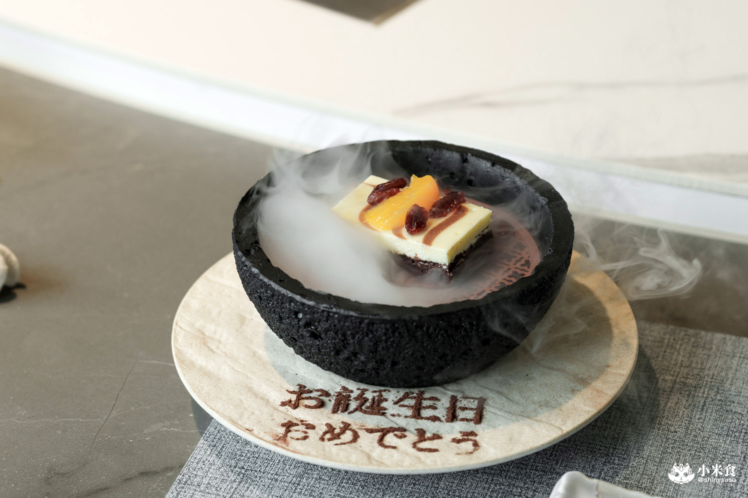 當月壽星禮以神秘的隕石球造型來獻上祝福,打開是驚喜的巧克力布朗尼,伴隨唯美的雲霧繚繞,誠意十足的壽星禮,訂位時需提前告知喲!