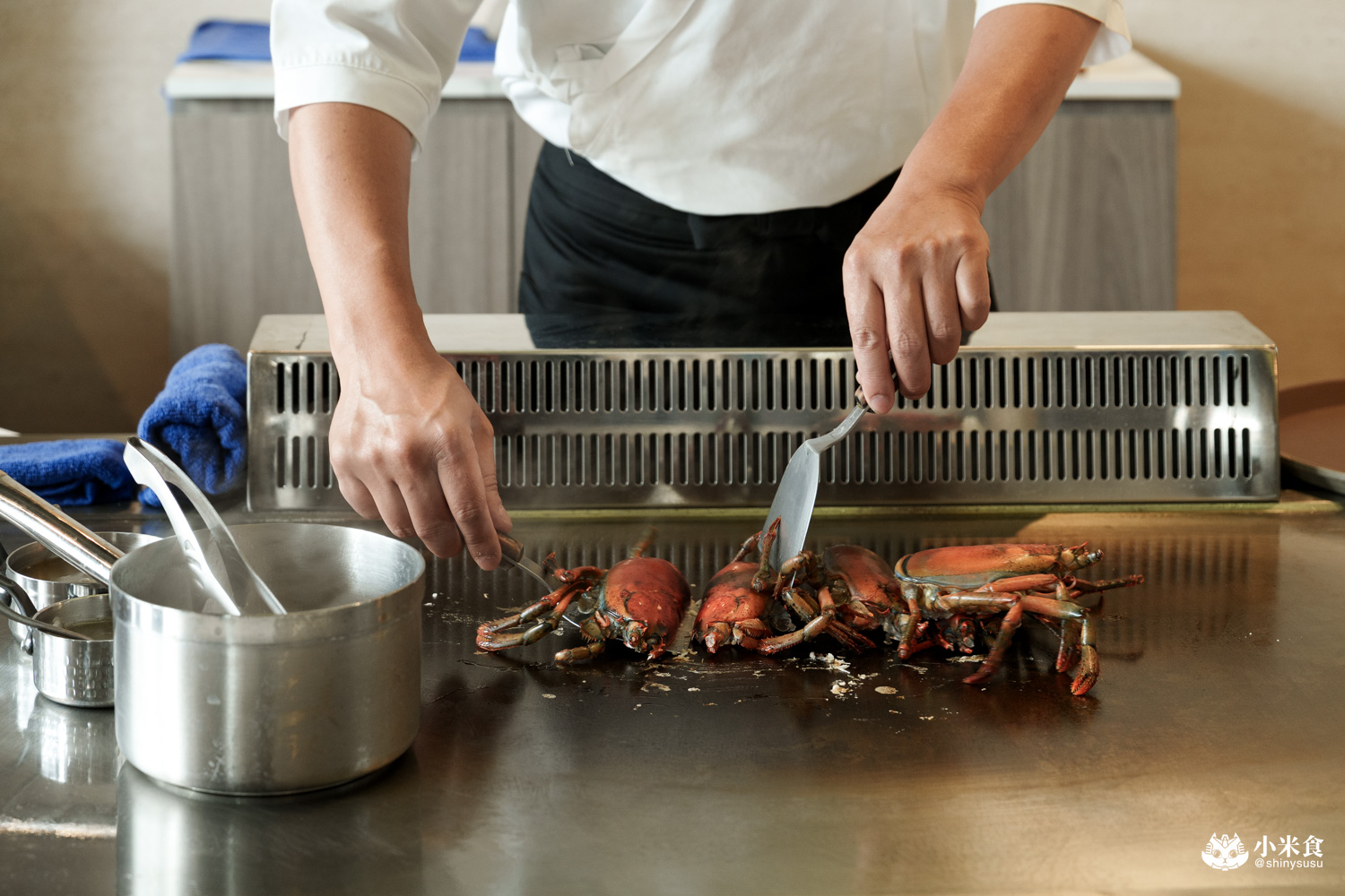 每份套餐提供1/2尾波龍做三吃,龍蝦背入蒸蛋、蝦螯與蝦膏配漢堡、搭配上香煎龍蝦身,鐵板燒肯定要有龍蝦這尾鮮氣配角!
