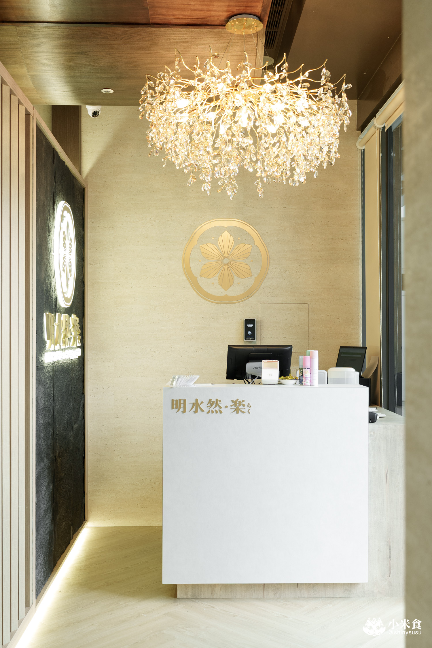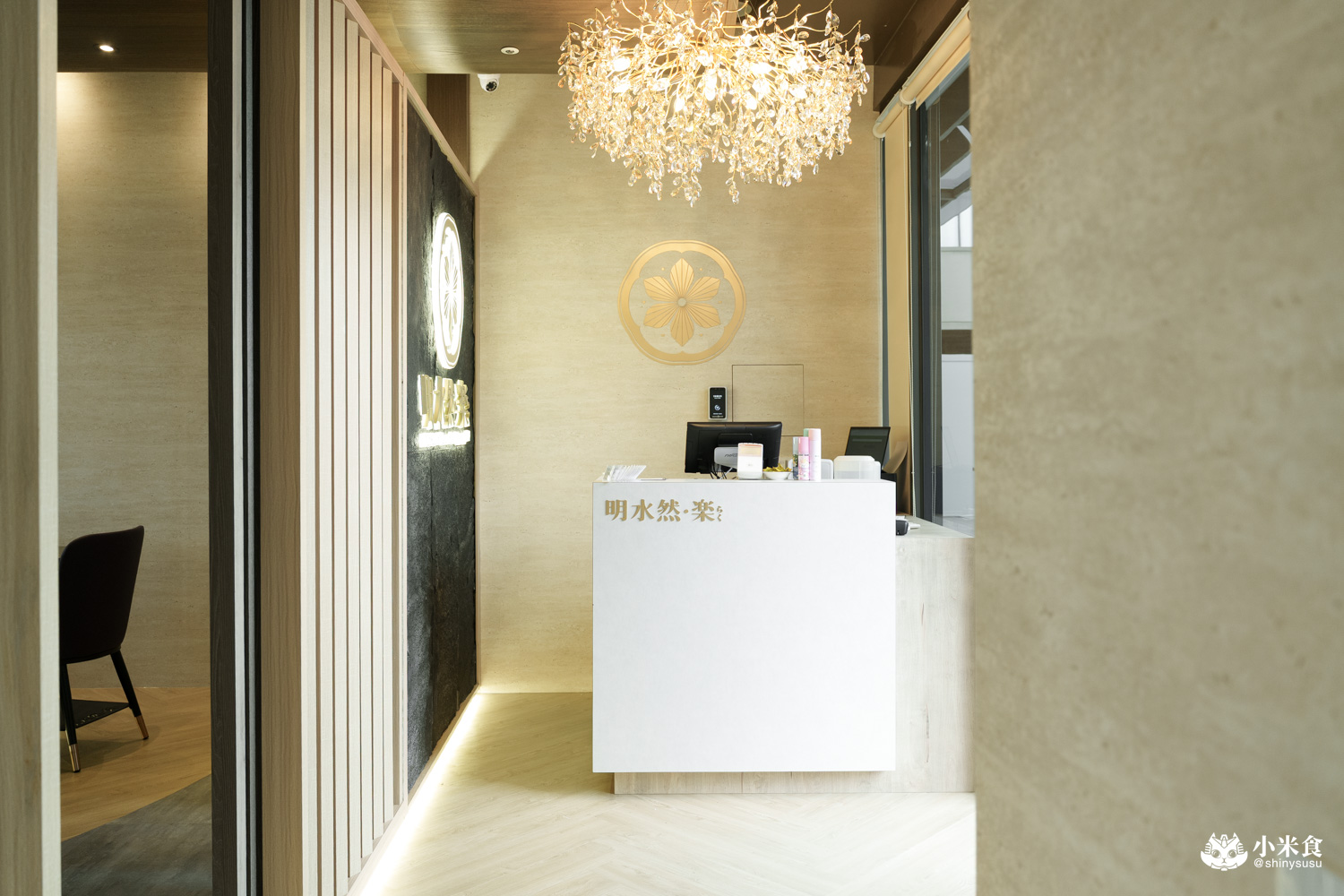 選址在逢甲商圈星享道酒店裡的明水然・樂 台中星級店,入飯店後直奔九樓即可抵達。外觀寂靜典雅,門口置放品牌標誌性的白色大燈籠,第一印象很舒服。