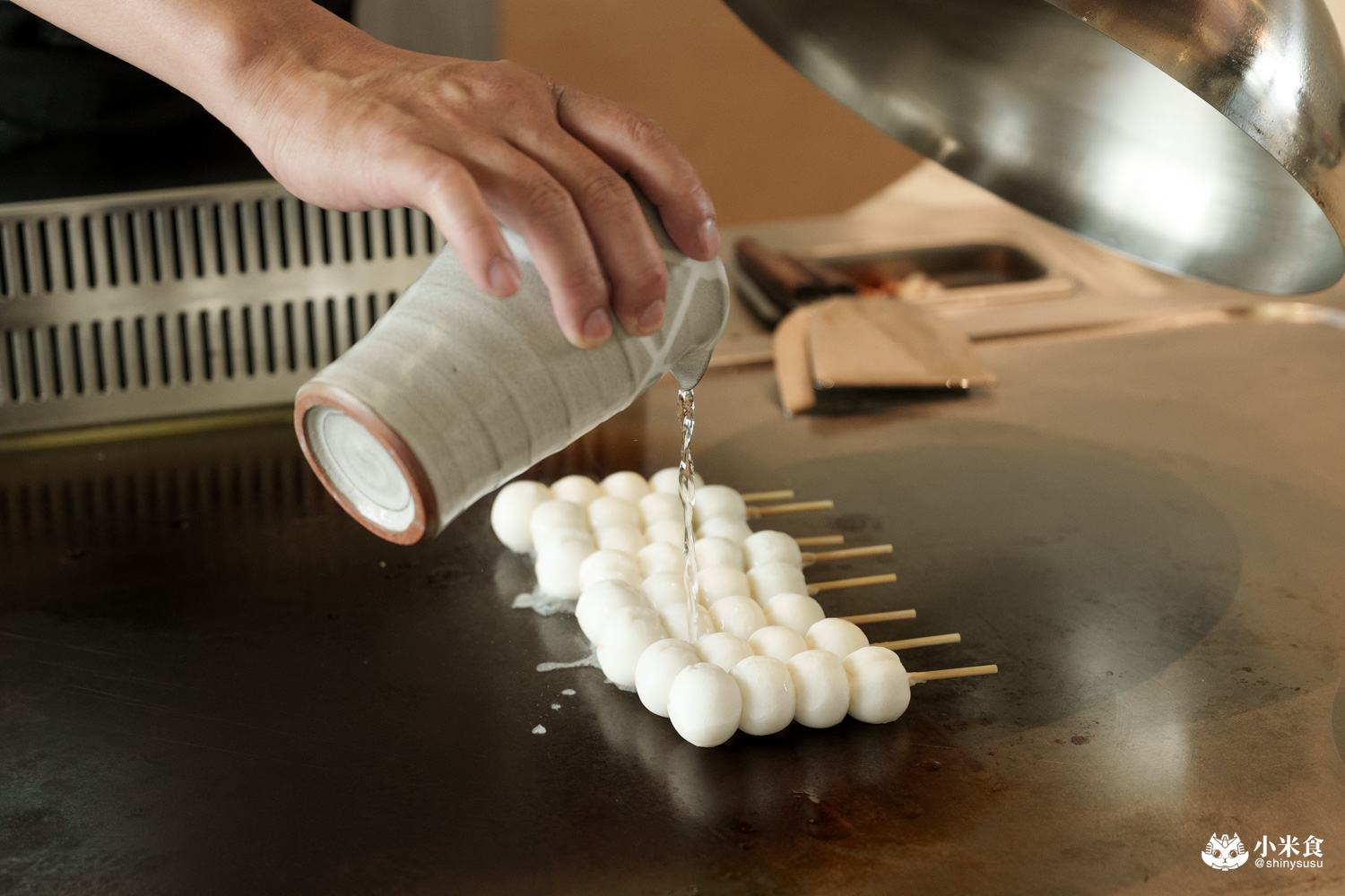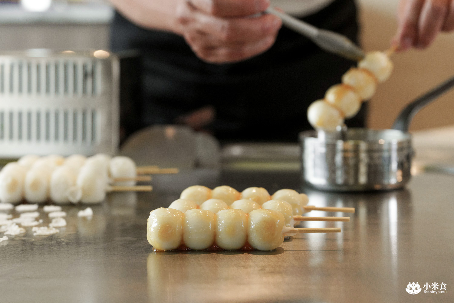 甜點以少見的日式糰子來為餐敘畫句點,糰子上鐵板稍微煎過再薄刷照燒醬,