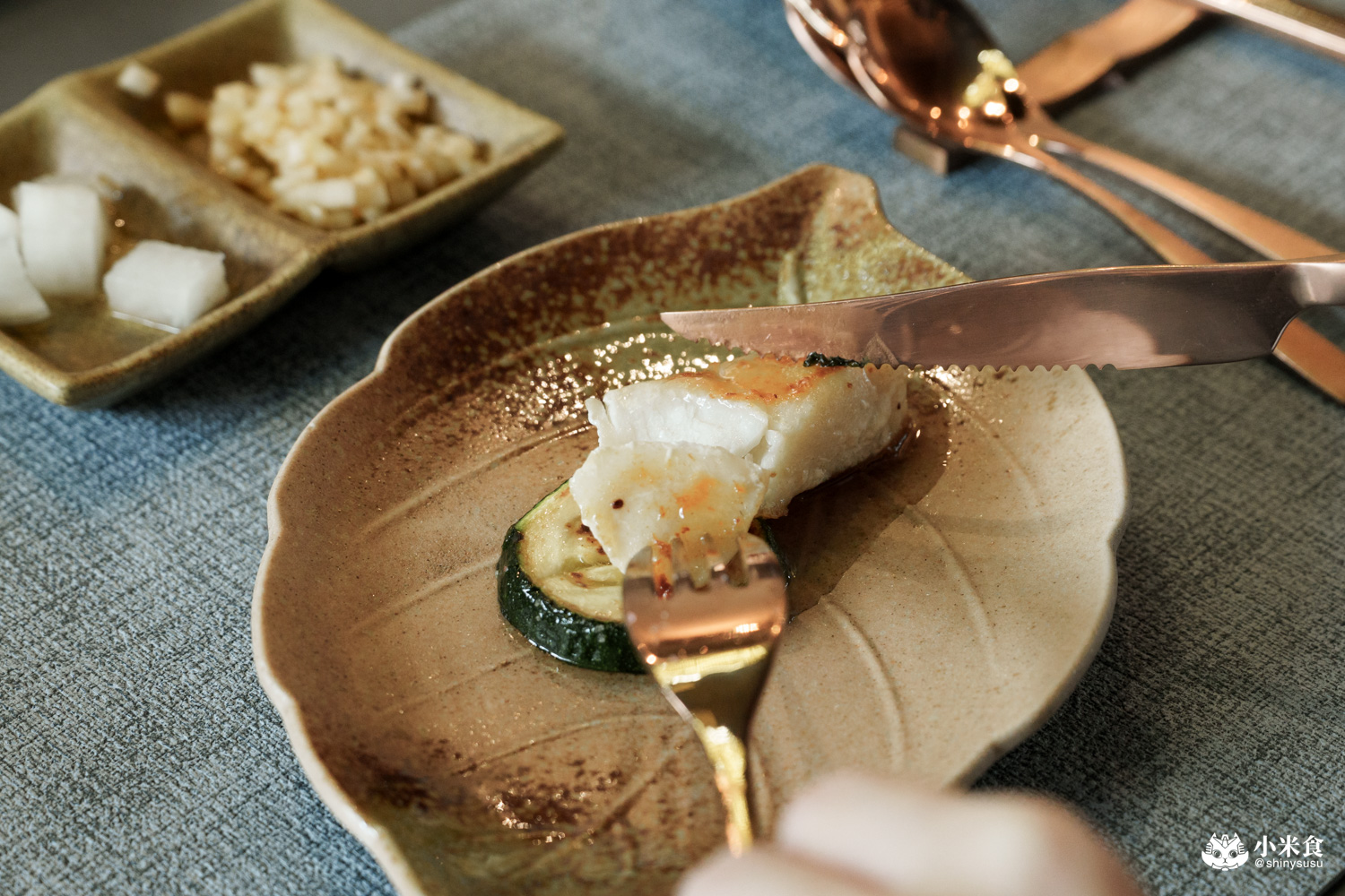 佐紫蘇梅醬增添爽度,還有脆嫩櫛瓜來蔬香轉味