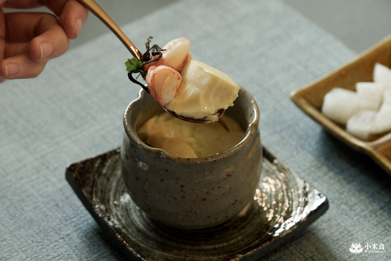 蒸蛋鮮甜滑嫩,龍蝦肉彈Q飽嘴,感覺昆布鹽的鹹度稍高,微微搶了蒸蛋風采