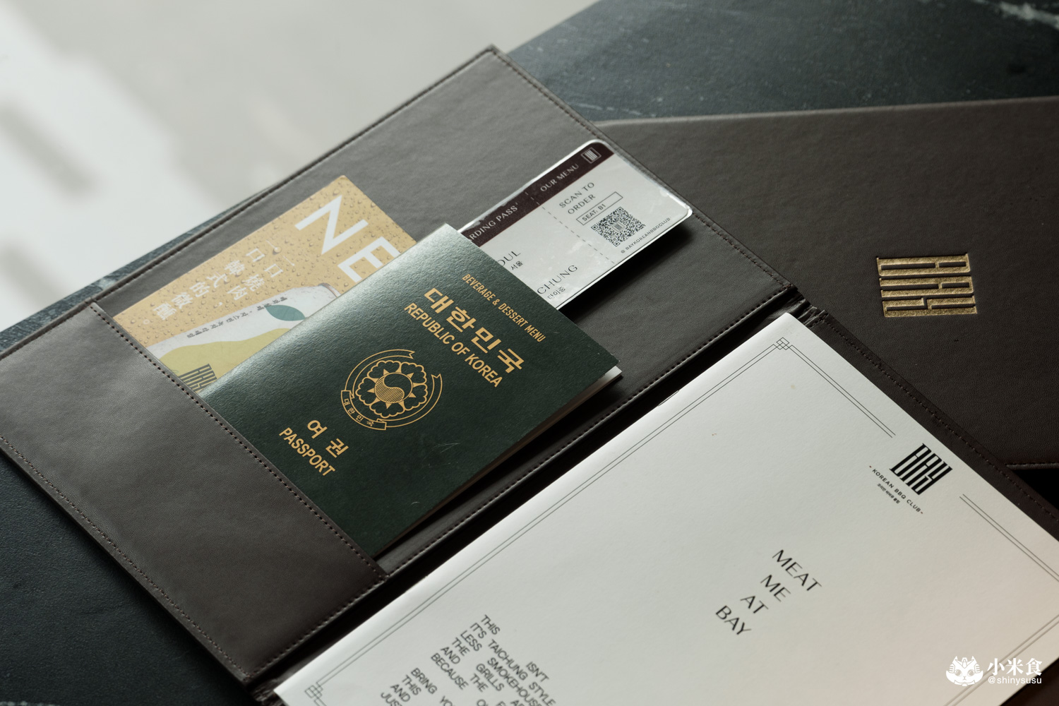 採QRCode點餐,BAY Korean BBQ Club菜單設計得像台灣護照與舊式韓國護照一樣,是美美的綠色,而點餐QRCode則秀在一張機票上,儀式感滿滿