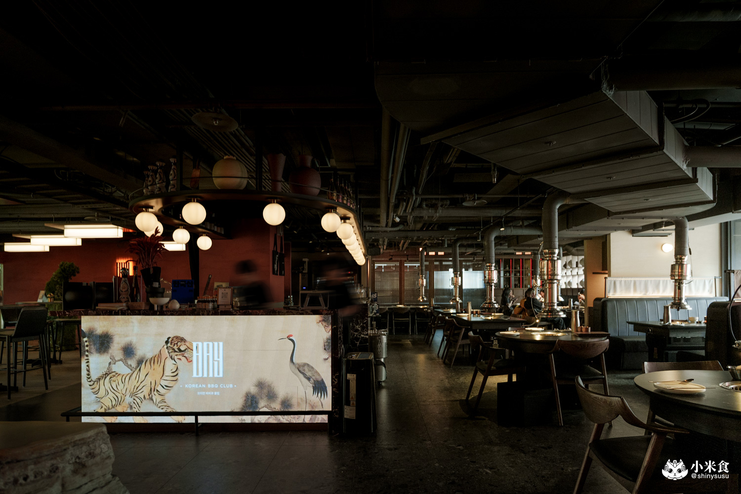 BAY Korean BBQ Club空間以古典韓風、街頭霓虹與老虎元素遊走交錯,將中城夜晚魔幻點燈