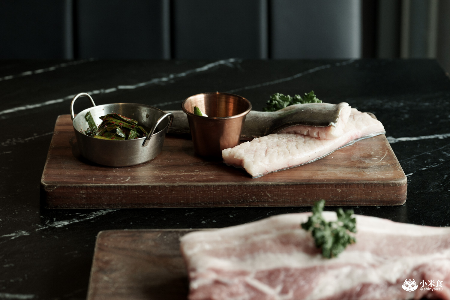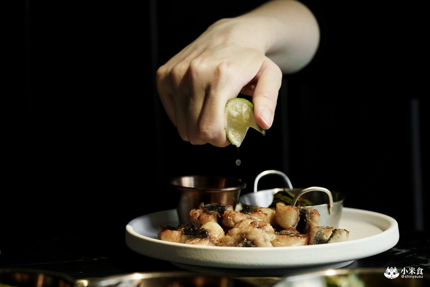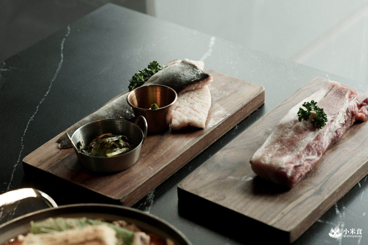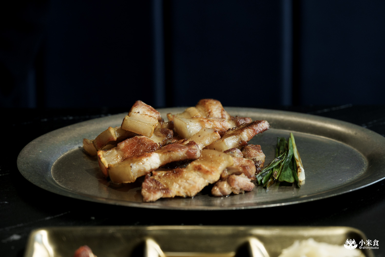 肥Q爽彈的五花以海苔包覆,佐青龍椒、芝麻油與豆瓣醬,香氣口感並具;黑鰻烤出焦脆表皮,魚肉細緻彈嫩,單吃美味,以清新洋蔥醬汁提香也不錯,或是創造自己獨特吃法麻金讚