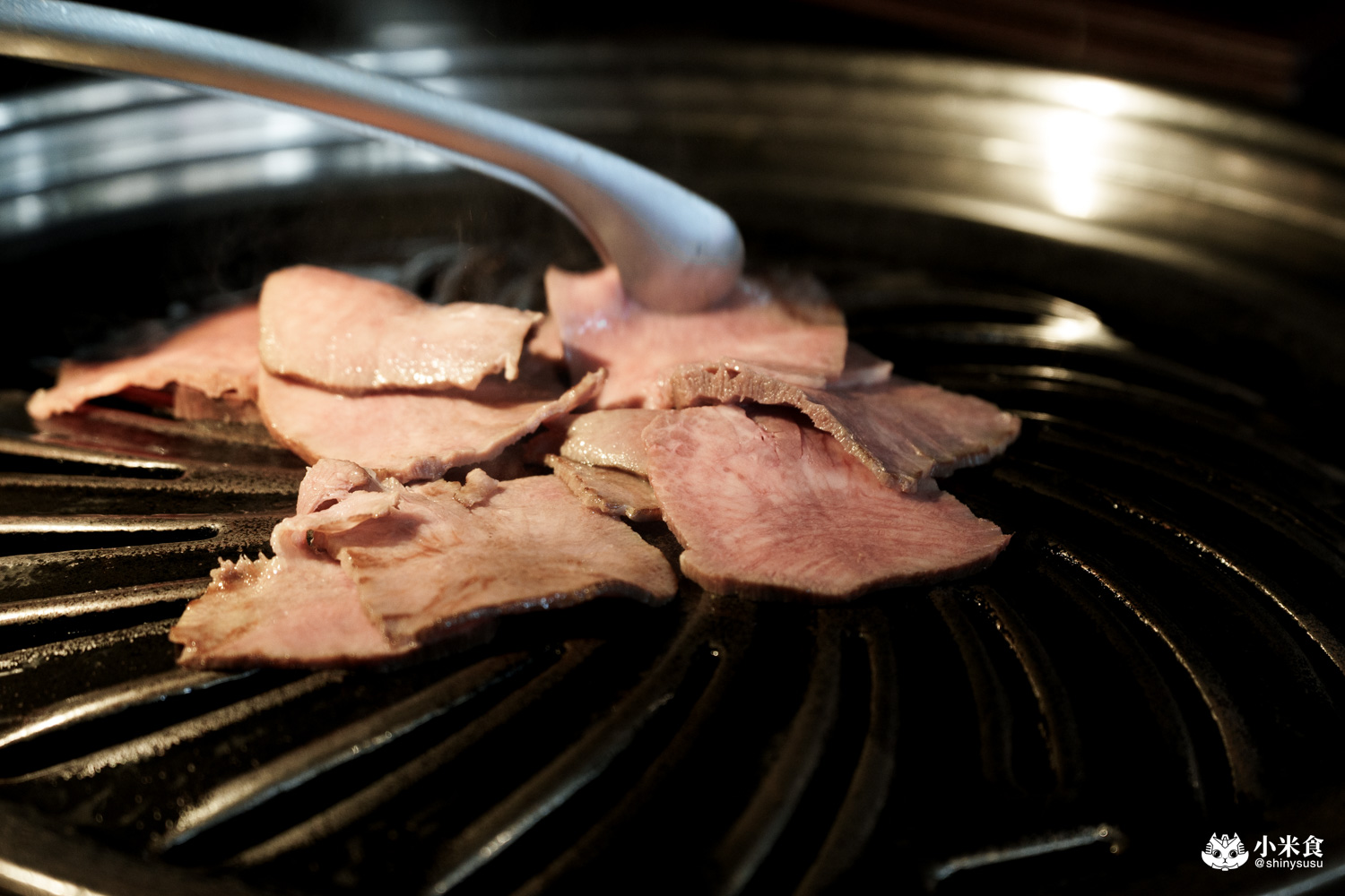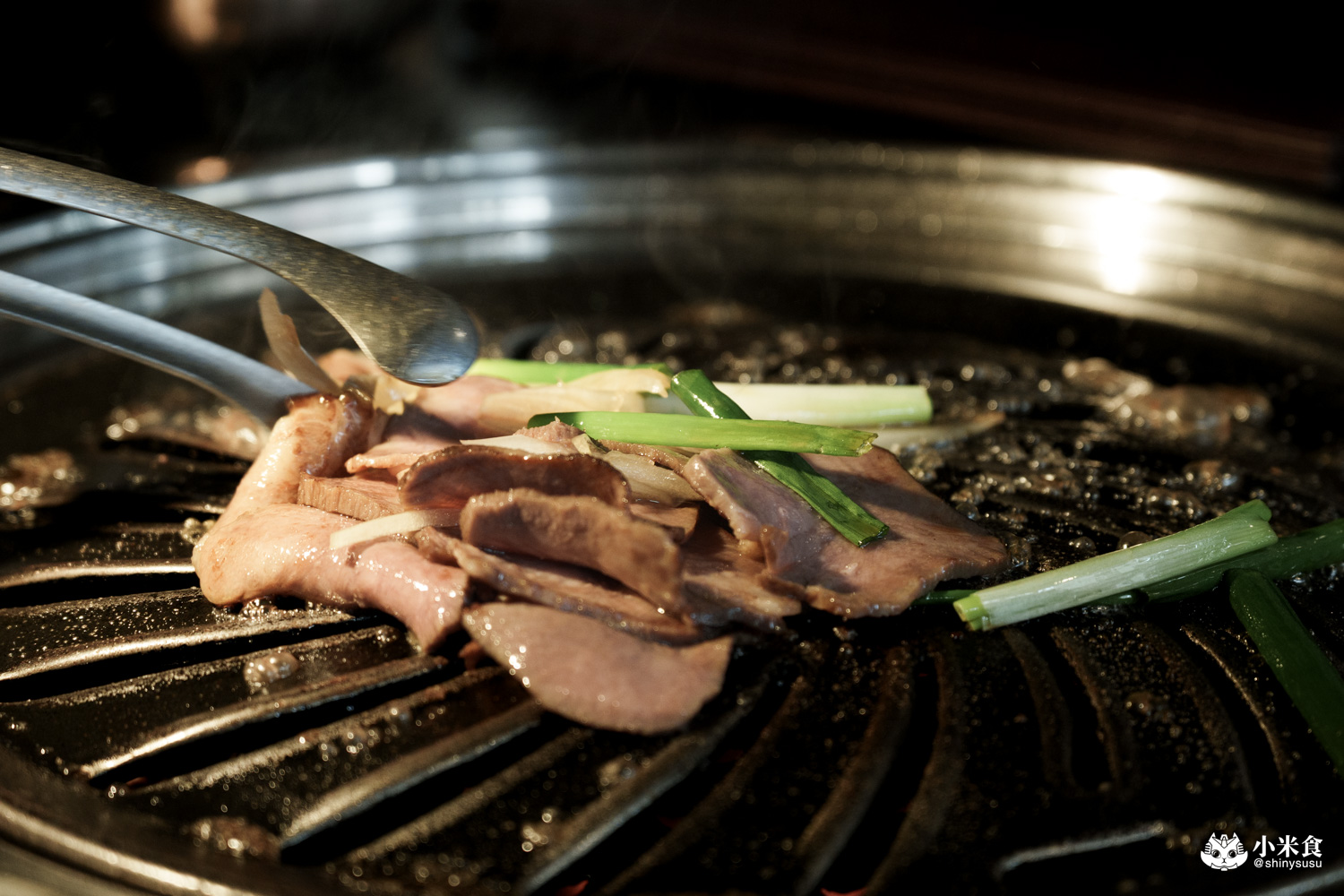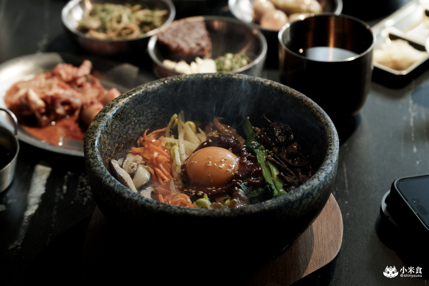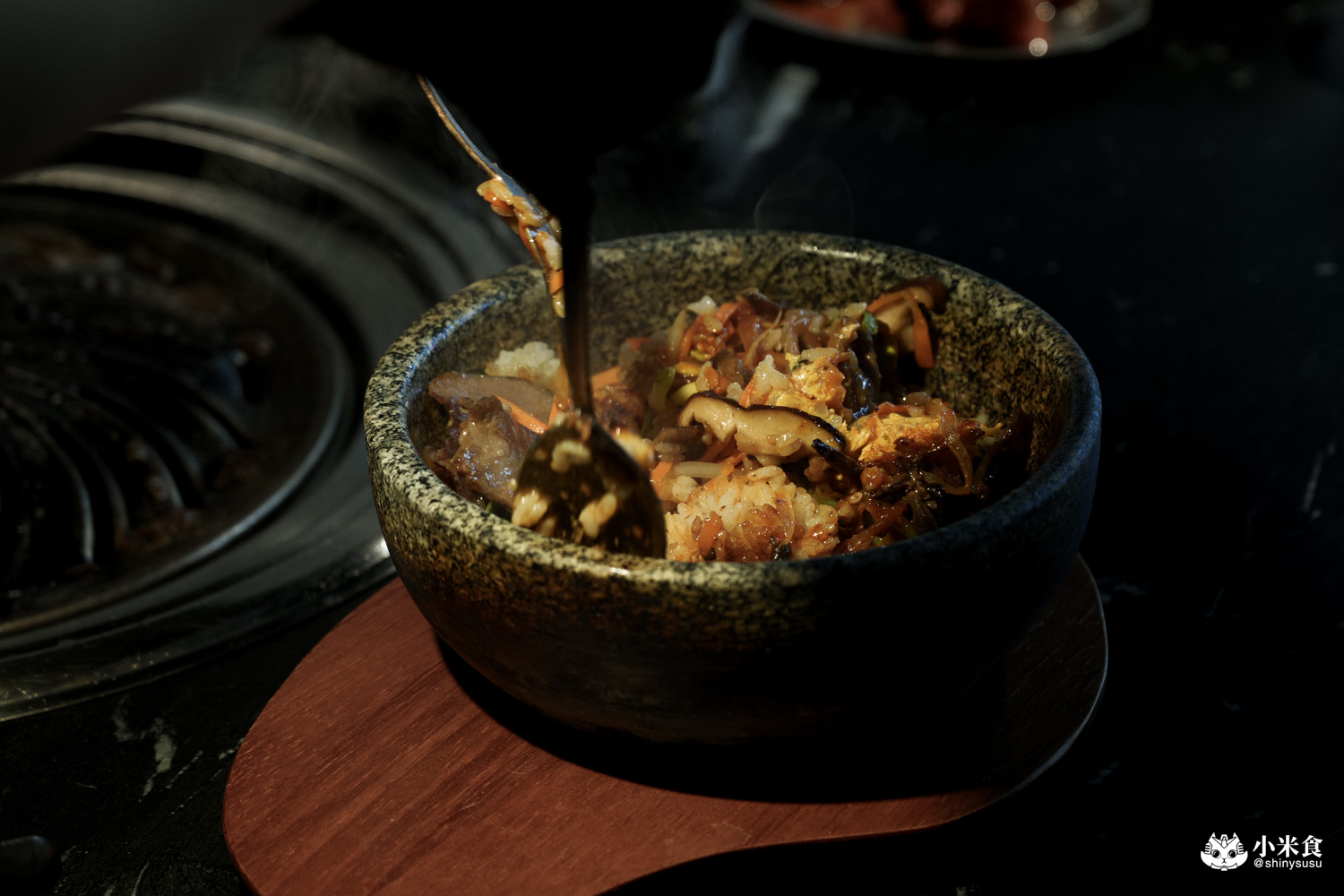 熱騰冒煙的石鍋拌飯,一上桌就眼球自動追焦!牛舌先上烤爐爆炒一波,而石鍋在一旁摩拳等待合體!