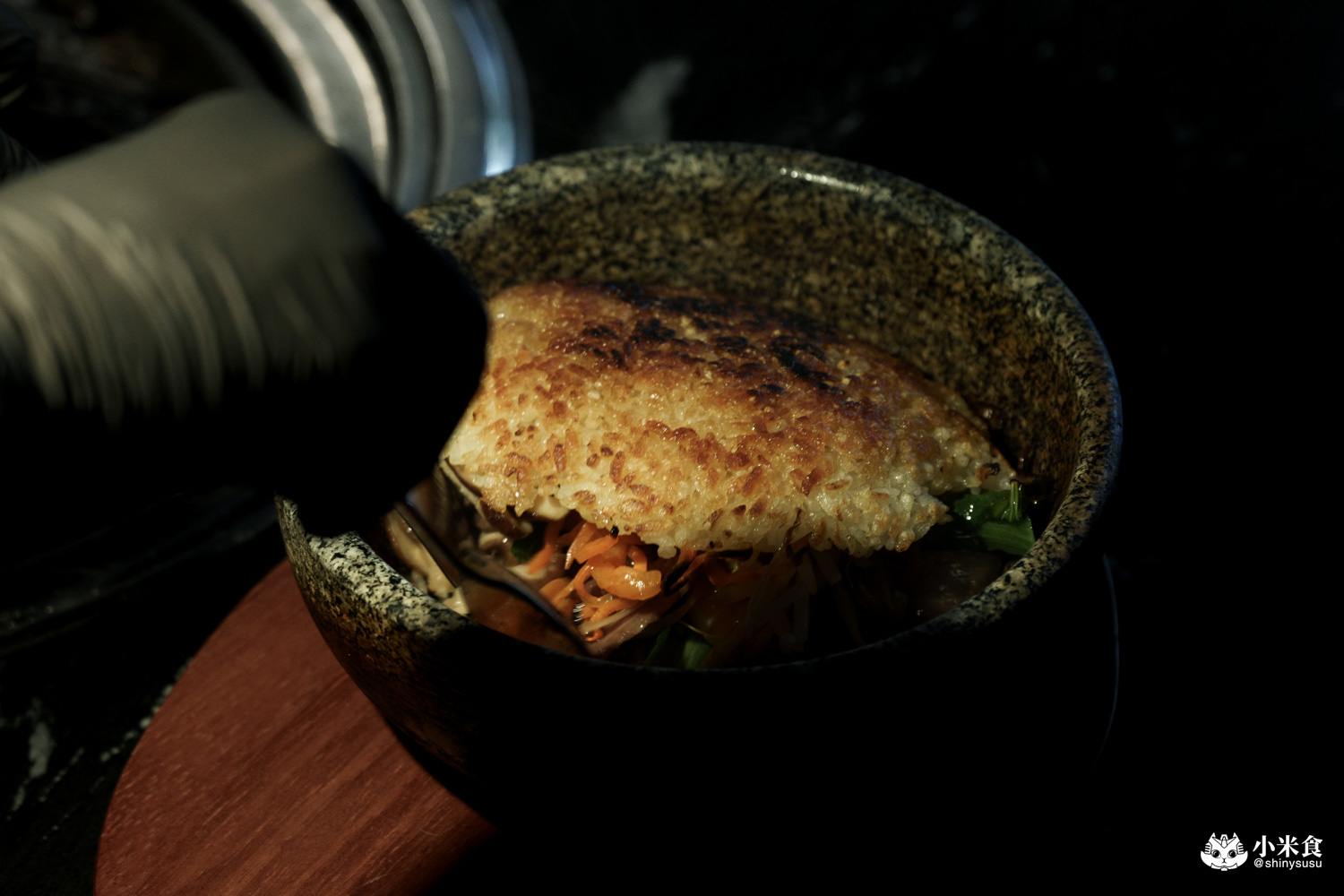 米飯選自引以為傲的台農77號台灣越光米,粒粒香軟且飽滿分明,與爽脆時蔬、醇滑半熟蛋和石鍋底部焦脆的鍋巴相拌,好食!