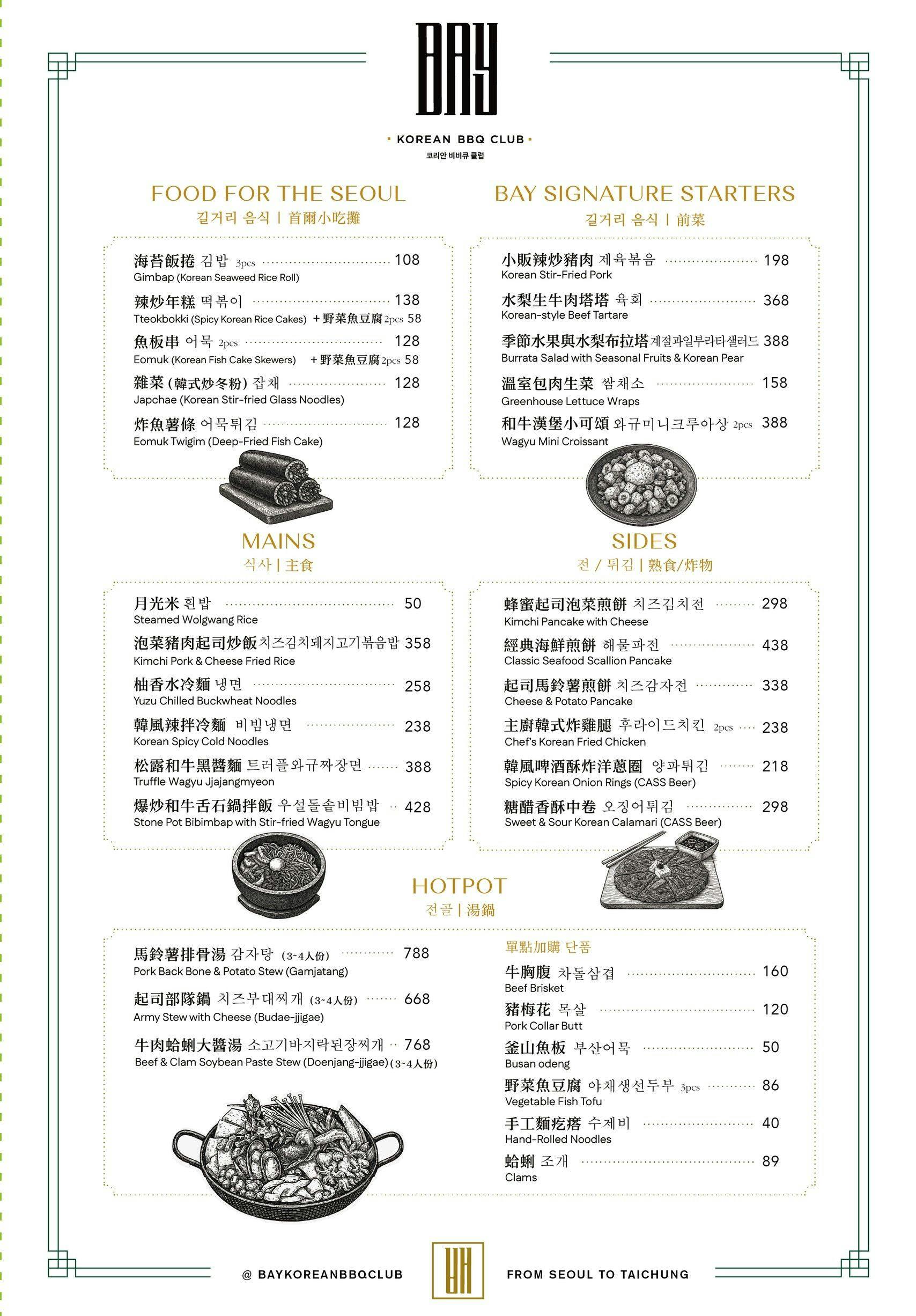 由單身即地獄出演者-文世勳,擔任餐飲總監的韓式燒肉BAY Korean BBQ Club,扎根中台灣,BAY取自韓文배(梨),有著祝福與關懷寓意